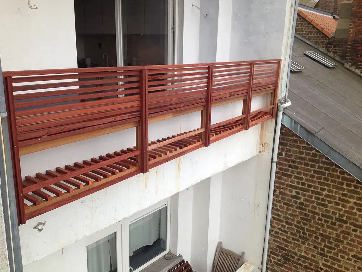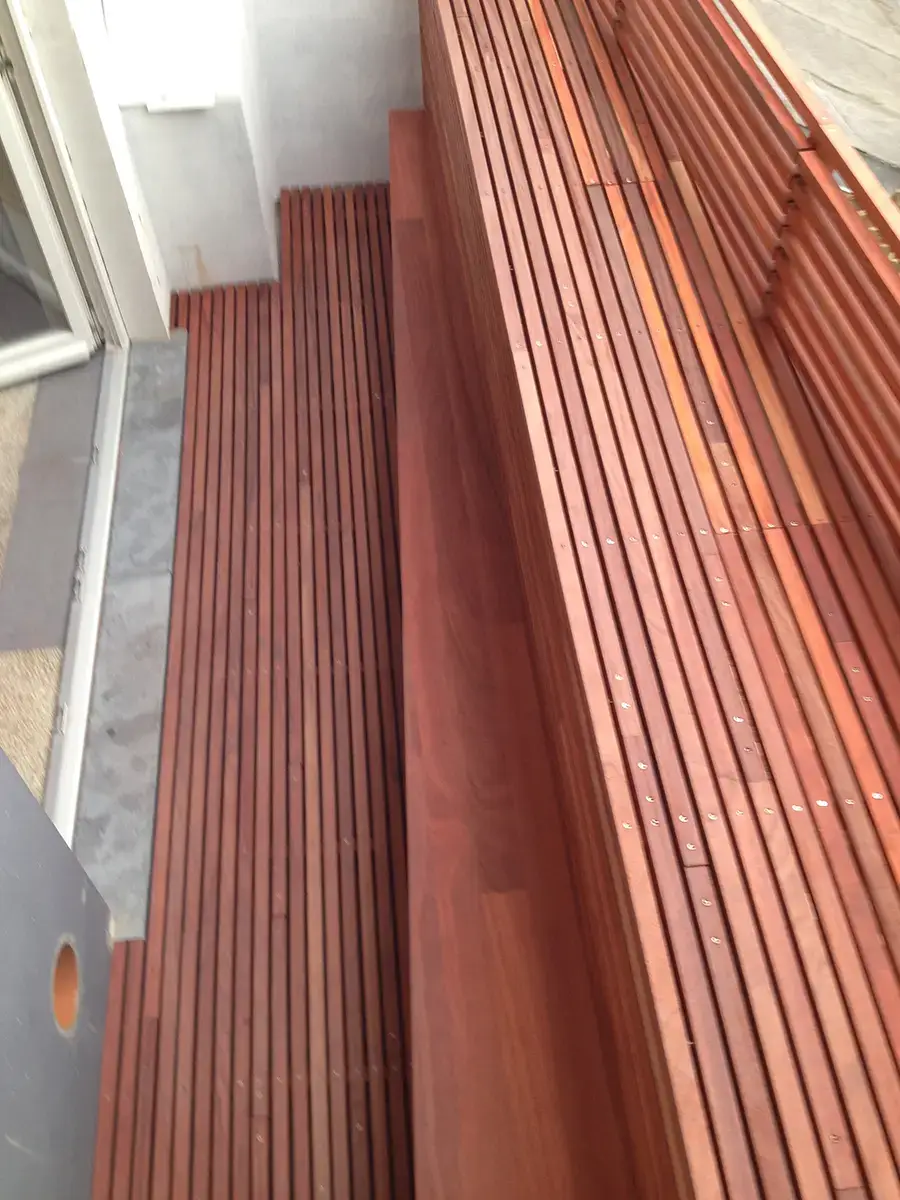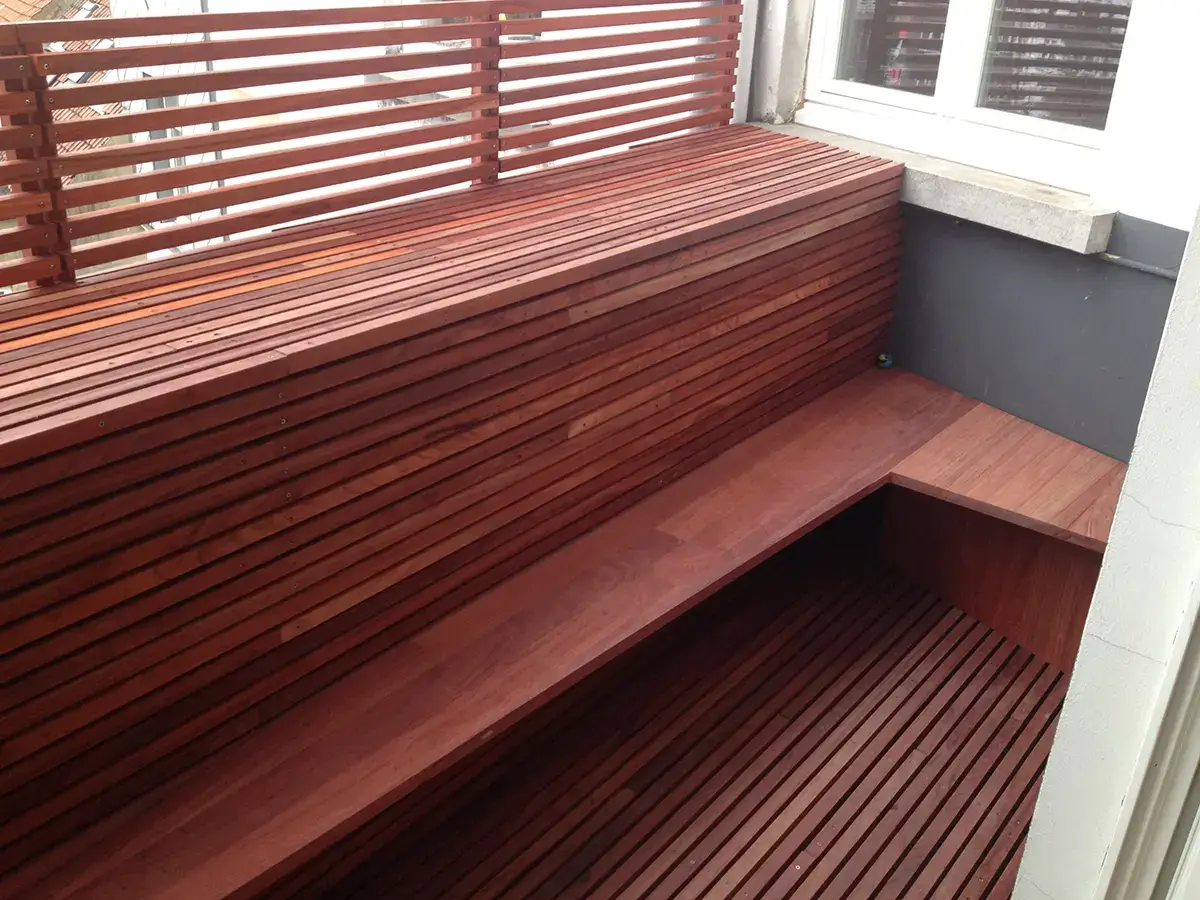 • Petit balcon aménagé en merbau confortable et à l’abri des regards.