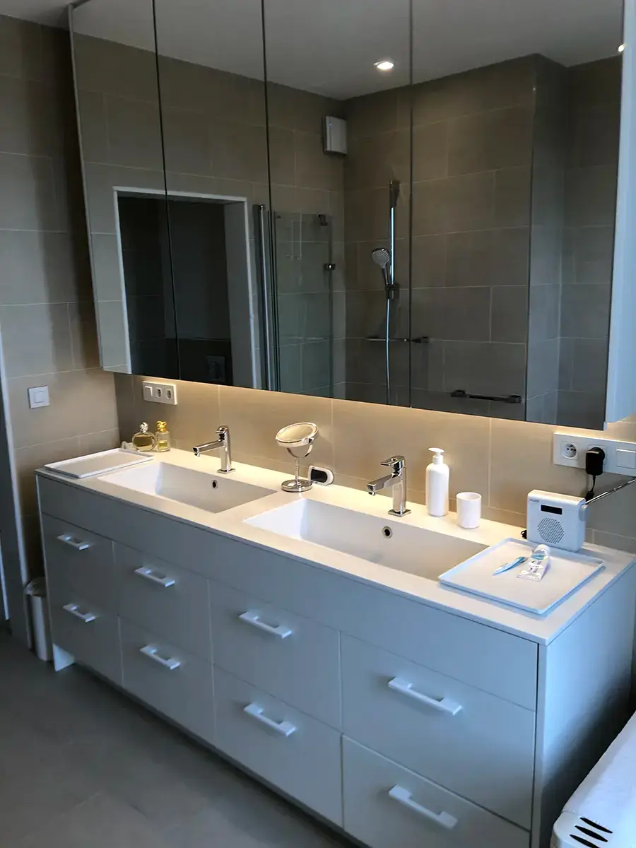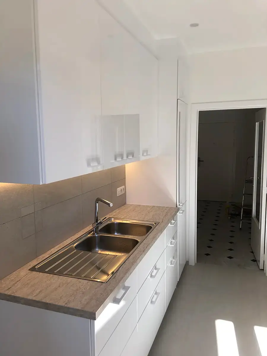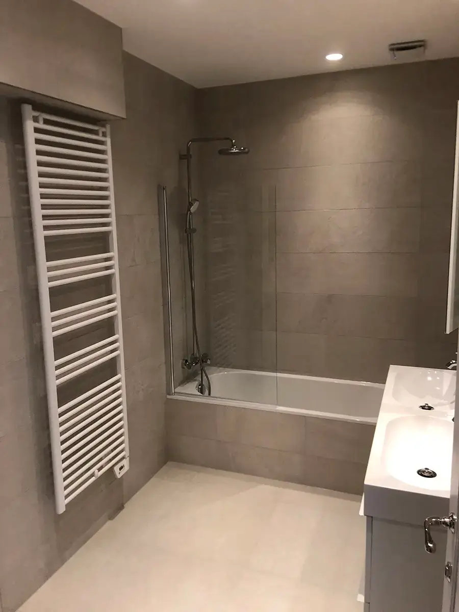 Rénovation du sol au plafond comprenant des modifications structurelles ainsi que la pose d’un parquet semi-massif en teck.