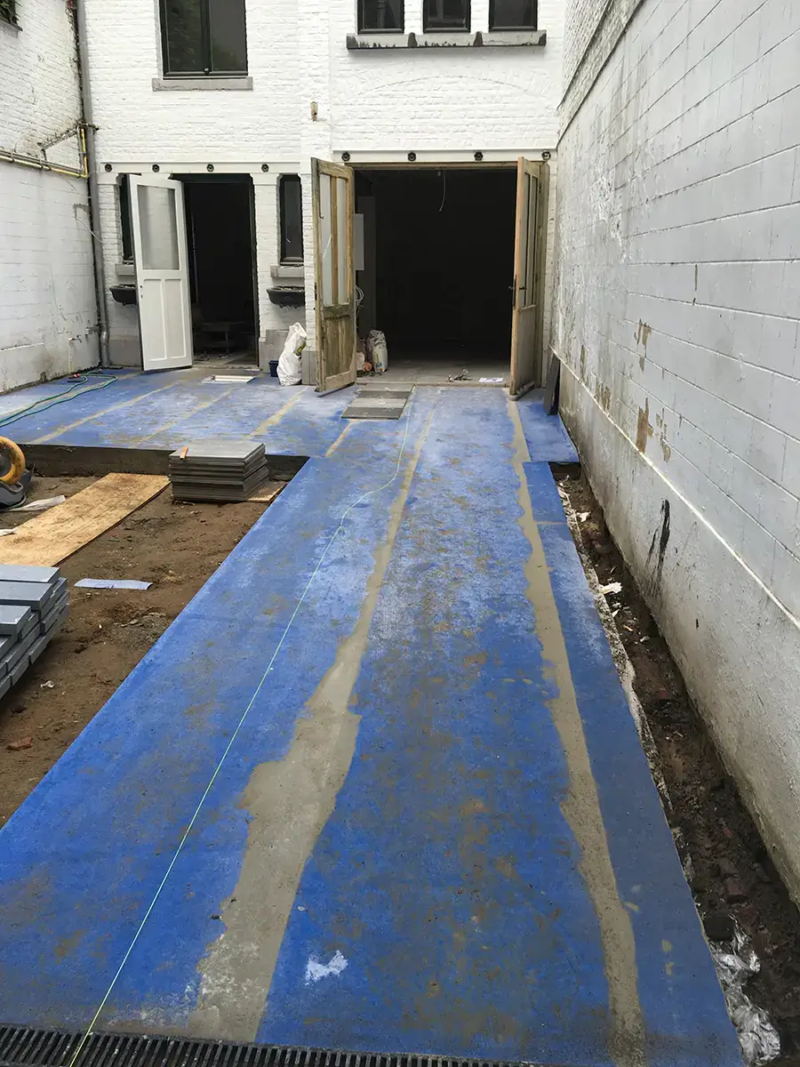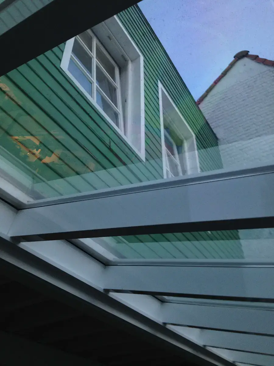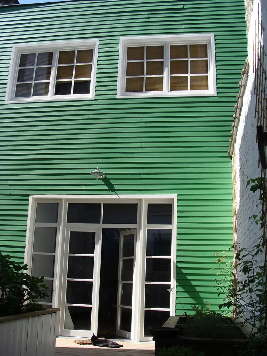 • Rénovation de la maison arrière avec ajout d’une lucarne dans le toit, réalisation d’un auvent en acier thermolaqué et aménagement de la cour.